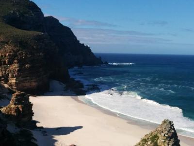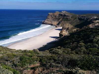 遠くに見えている半島の先が喜望峰です。その手前に白砂のディアスビーチが...
