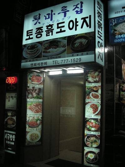 明洞にある「テンマルチプ」はサムギョプサルを食べたいときに行きます。ここのサムギョプサルはかなり肉厚で食べ応えがありますよ。あまり観光客の姿はなく地元のサラリーマンばかりです。サムギョプサルは1人前W8,000。