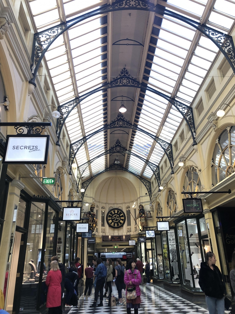 とてもきれいなアーケード。特に天井の採光窓が美しくて、外を歩いているのとは違った気分を楽しめます。建築されてからもうすぐ150年というこのアーケードは、メルボルンがオーストラリアの他の街とはちょっと違った、モダンな歴史を持つ街なんだと実感させてくれます。