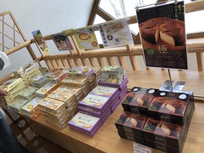 土産物売り場ではチーズ以外の乳製品もあります。箱入りのお菓子も色々ありました。
