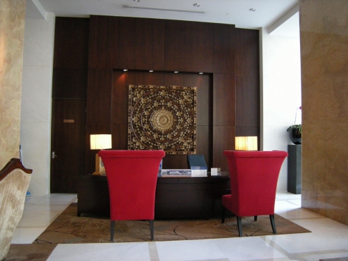 店内はおちついた茶系で統一され、カウンターにはとても豪華な胡蝶蘭が飾られていました。「これ生花?」と聞いたら「はい」とのこと。洪水直後の客が少ない時期であっても、きちんと細部に至るまで手をかけるホスピタリティーの精神に感心しました。