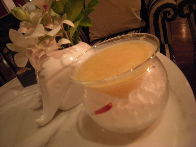 私が選んだのは「ストーミーローズ」という薄ピンク色のカクテル。名前のごとく、グラスの中にはバラの花びらが数枚揺れていてとーってもロマンチック。その上味も繊細で甘すぎず、とっても美味しいカクテルでした。ストーミーローズに感動して、次に選んだのは「スパイシーマンゴー」という名前のカクテル。マンゴーなのになぜスパイシー?と思いきや、なんとこのカクテル、レッドチリの味がピリリと効いているのです。この味の好みは分かれるところですが、なにより独創性があって楽しめました。