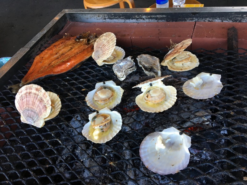 サロマはホタテが有名、なのでホタテと牡蠣とサクラ鱒の一夜干しを買って食べました。
