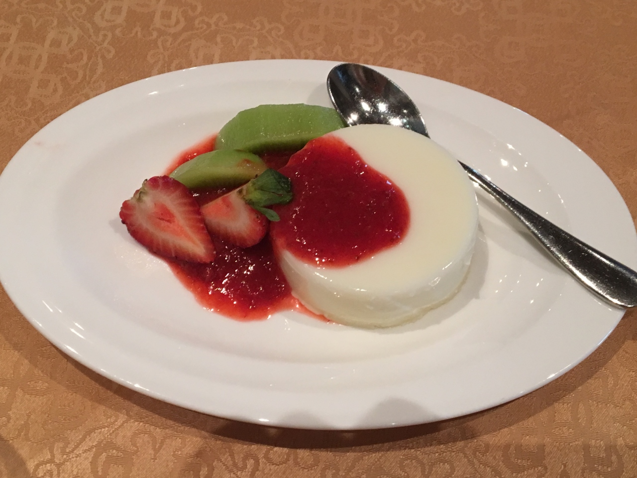 付け合わせの野菜は朝顔の茎とニンニクの炒め物(美味)、そしてメインコースが出された後に、デザートのアイスクリームです。