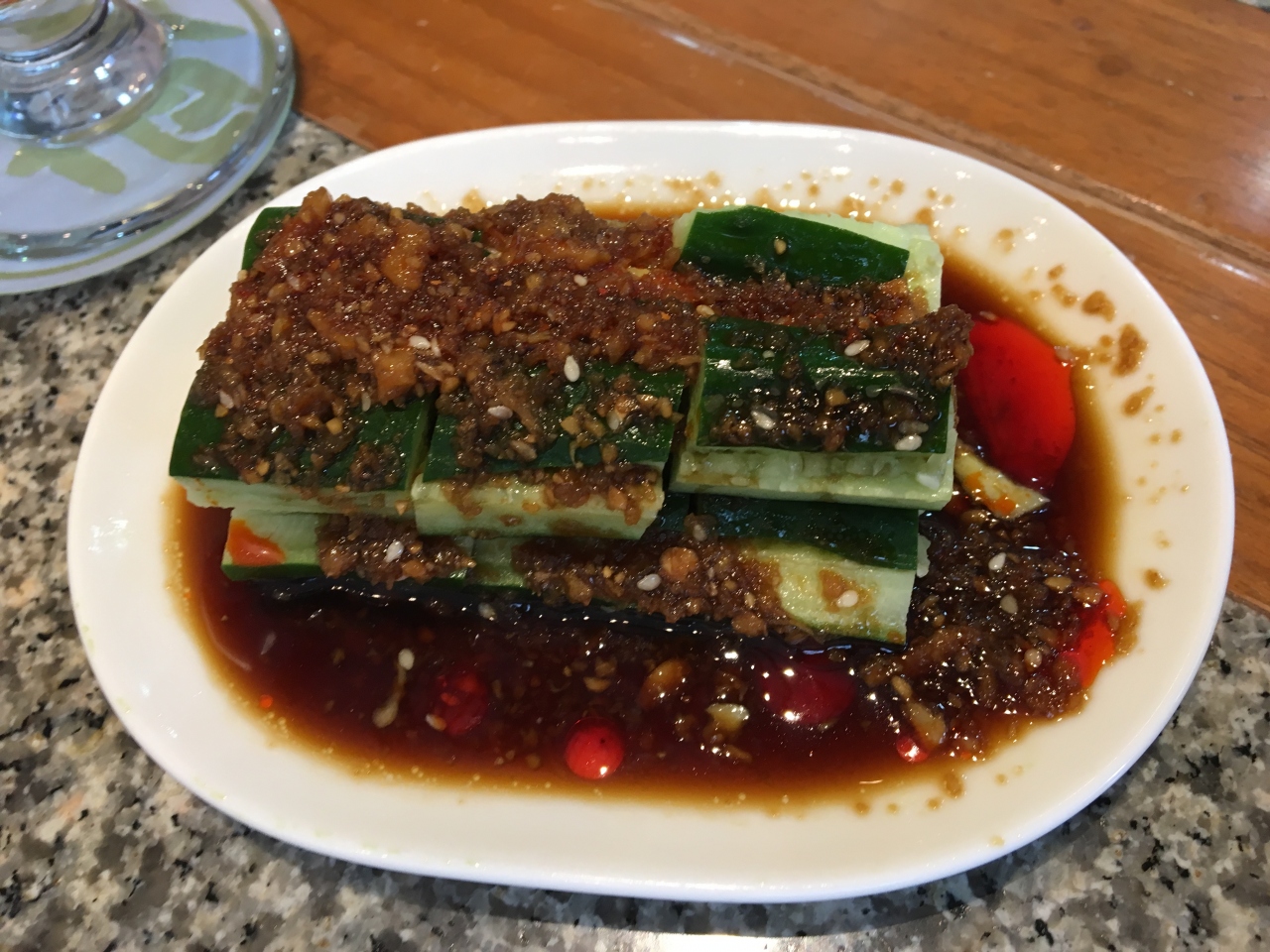 他には酸っぱいスープに入った牛肉入りのヌードル、エビと豚の揚げワンタンなどをいただきました。どれも文句ない美味しさ!満足しました、ごちそうさま- 旅行時期
