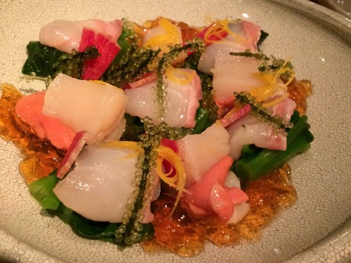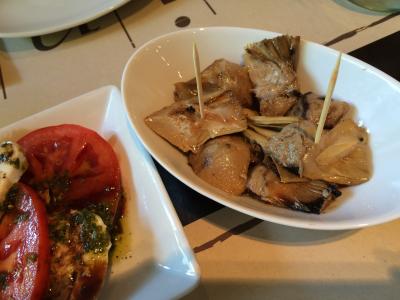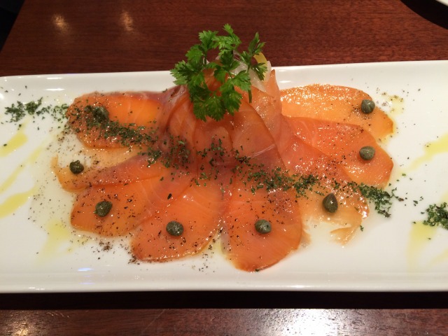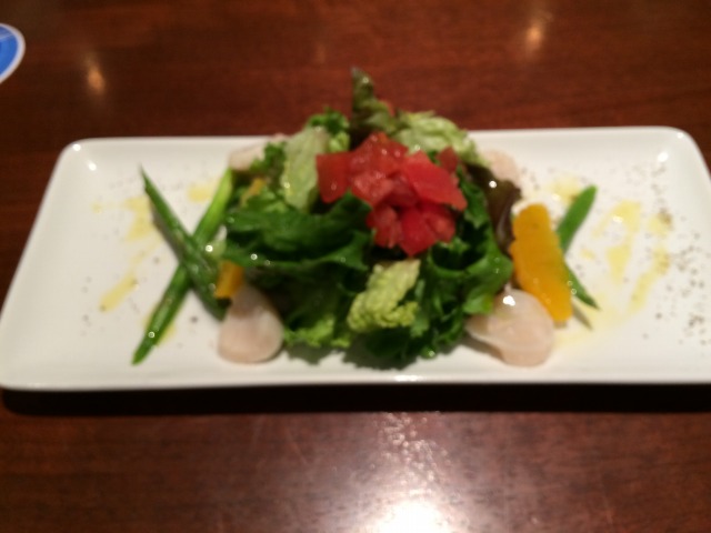この時食べたマスのカルパッチョ(だったかな)とホタテのサラダは美味しかった。