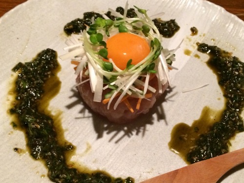 男二人、女二人でテーブル席を予約しておきました。外で並ぶ人を尻目に余裕で店内へ。とにかく食欲旺盛なメンバーだったため、次々頼みまくりました。よくブログやテレビでも紹介されるロブスターやビーフ料理も美味しかったですが、それ以外の(料理名は不確かですが)雲丹クリームとか焼きしめ鯖、ウナギの白焼きなどもかなーり美味しかったです。