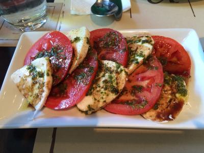 カジュアルな雰囲気の店で店内広し。料理はイタリアンをアレンジした、軽めのものが多い。ランチを食べに行ったが、ワインやビールを楽しんでいる人がたくさんいた。