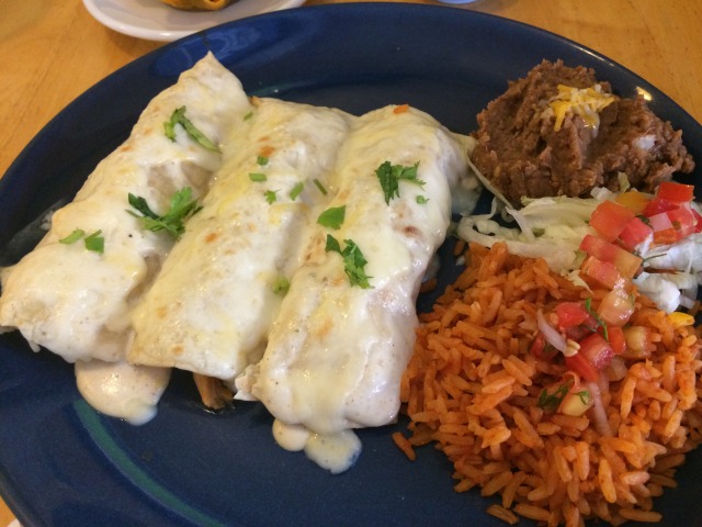 メキシカン料理のフランチャイズで、タコストルティヤを使ったようリガメイン。ディップソースはにチリ、ハラペーニョ、アボガドディップなど10種類程度あるものを好きに取れるようになっている。