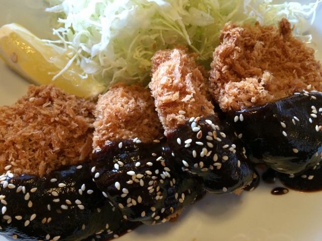 頼んだのは結局名古屋の味噌カツ。大ぶりのヒレカツが4切れ。かなりのボリュームです。そして味噌だれたっぷりかかってます。