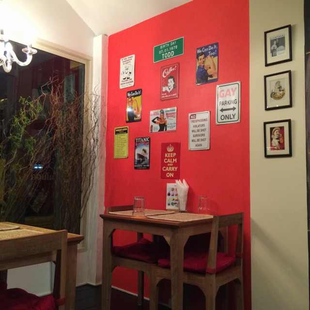 イェンナカート通り沿いに新しくできたレストラン。テーブルは中に4つ、外に3つといたってコンパクト。そのせいかどことなくアットホームな雰囲気が漂う。