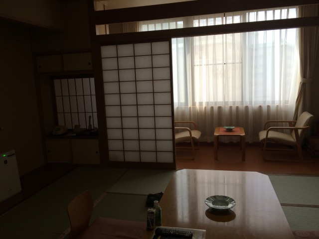 古いホテルでは歩けど、部屋はキレイに保たれていて、古さを感じさせない。畳はまだ新品でへり全く傷んでいないのが好感が持てた。