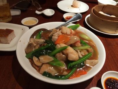 中でも好きなのはシーフードの五目あんがかかった揚げ麺。イカやエビ、白身の魚がゴロゴロ入っていて、野菜やマッシュルームもたくさん。食べ応えあります。