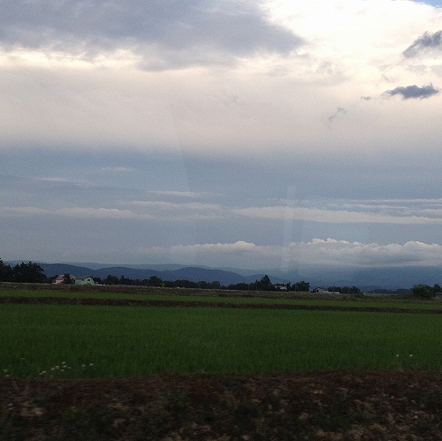 車窓からの眺めは美しい緑の畑が印象的で、一気に心が癒されます。