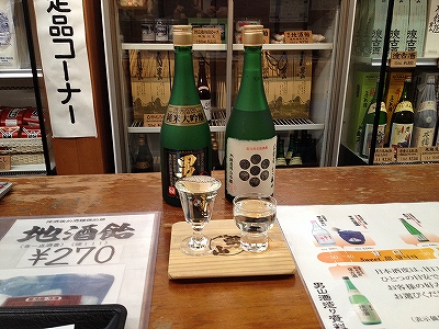 日本酒の醸造所らしい雰囲気の門をくぐて中に入ると、まず一階では利き酒を出来るようになっている。無料のものだけでも10種類くらいあり、有料のものが2種類。100円と150円のものがある。無料のほうはグラスに少しだけ入れてくれるが、有料のものは大き目のお猪口になみなみ。おつまみが欲しくなる。。。