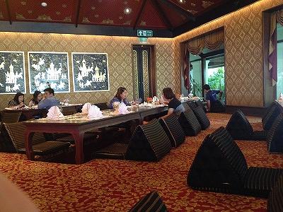 週末プライス、食事だけで1200バーツ(3600円)というには、ビュッフェの品揃えは貧弱で、かなりガッカリしました。何よりも驚いたのが揚げ物料理がずらっと並んだコーナー。鶏肉にエビにイカを衣をつけて揚げただけ。タイ風のソースが数種類並んでいたものの、料理自体はタイ料理でもなんでもない。もしかして、他のビュッフェレストランと併用してるのかも、と思いました。