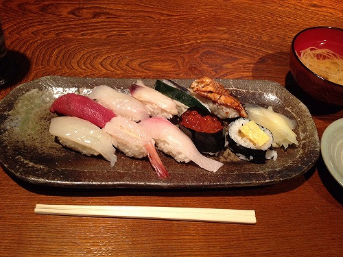頼んだのは握りのセット。旭川とはいえ流石は北海道。ねたが新鮮で美味しい。シャリは軽いけど崩れたりせず。