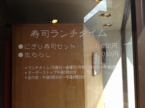 握り寿司か散らし寿司のセットがどちらも1050円とのこと。(いや、確か消費税アップした後だから税金80円だったような気が…)