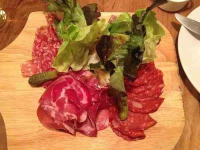 食事のメニューはけっこう種類が多く、中でもおかず系クレープがここの売り。個人的にはちょっと凝った作りの料理のほうが美味しいと思う。また前菜に頼んだ生ハムのプレートも美味しかったです。