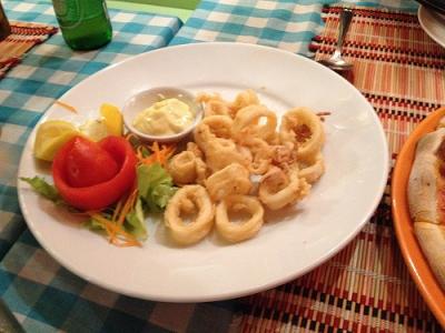 個人的おススメはカラマリフライ。このイカのフリッターはなかなか美味しい。あとはピザもパスタもまぁまぁ美味しいです。