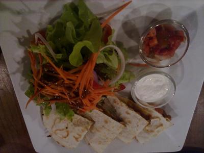 料理は4品頼み、うちお勧めできるのはフライドチキンと、チキンカセディア。