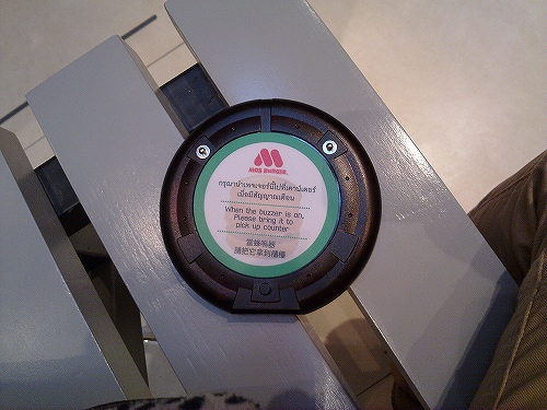 何かと思えば、この円盤がアラーム音とともに赤いランプを灯したら、自分のハンバーガーが出来上がった合図。円盤持参でカウンターに取りに行きます。