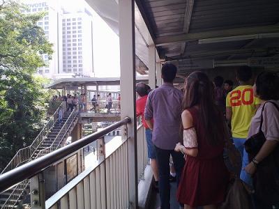 スカイウォークは駅とショッピングセンターを繋ぐ空中ブリッジのことで、サイアム駅で降りた場合にはここを通ってセントラルワールドへ行くことになります。