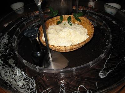 そうめん流しと言うと、半分に割った竹の滑り台に流して食べるものと思い込んで
