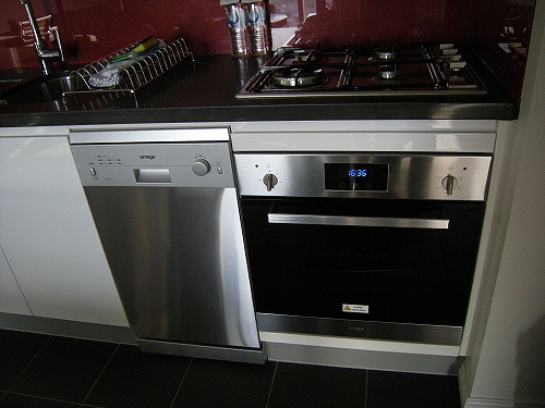 部屋はこじんまりとしているがモダンでお洒落。キッチンにはオーブンも