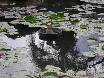海地獄の入り口をくぐり、すぐ左のところに、河童が座る桶を浮かべた池がある。