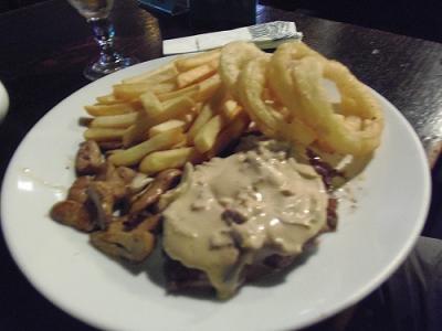 特にステーキ、フィッシュ&チップス、ハンバーガー、カセディアなど、食べやすいバーフードが多い。