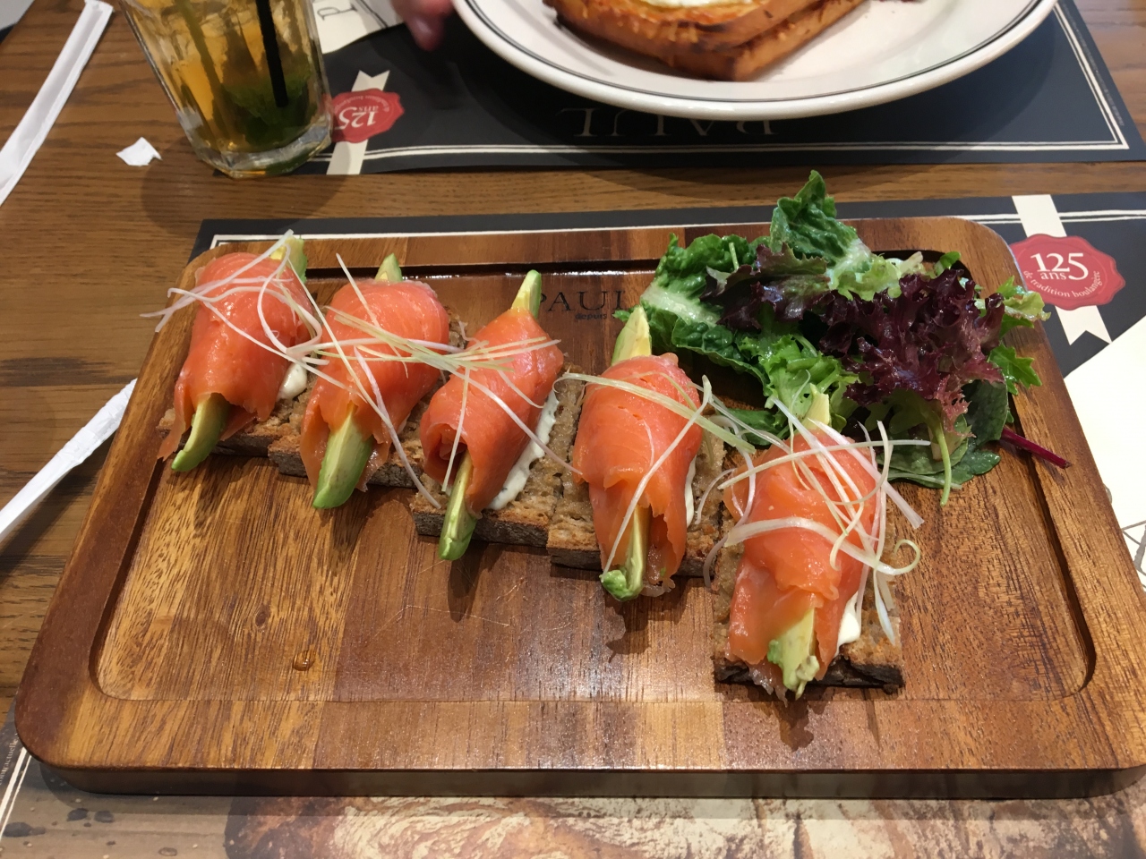 日本でもよく見かけるPAUL。アボガドとスモークサーモンのサンドが美味しくて、行ったらかならずこれを頼んでしまいます。