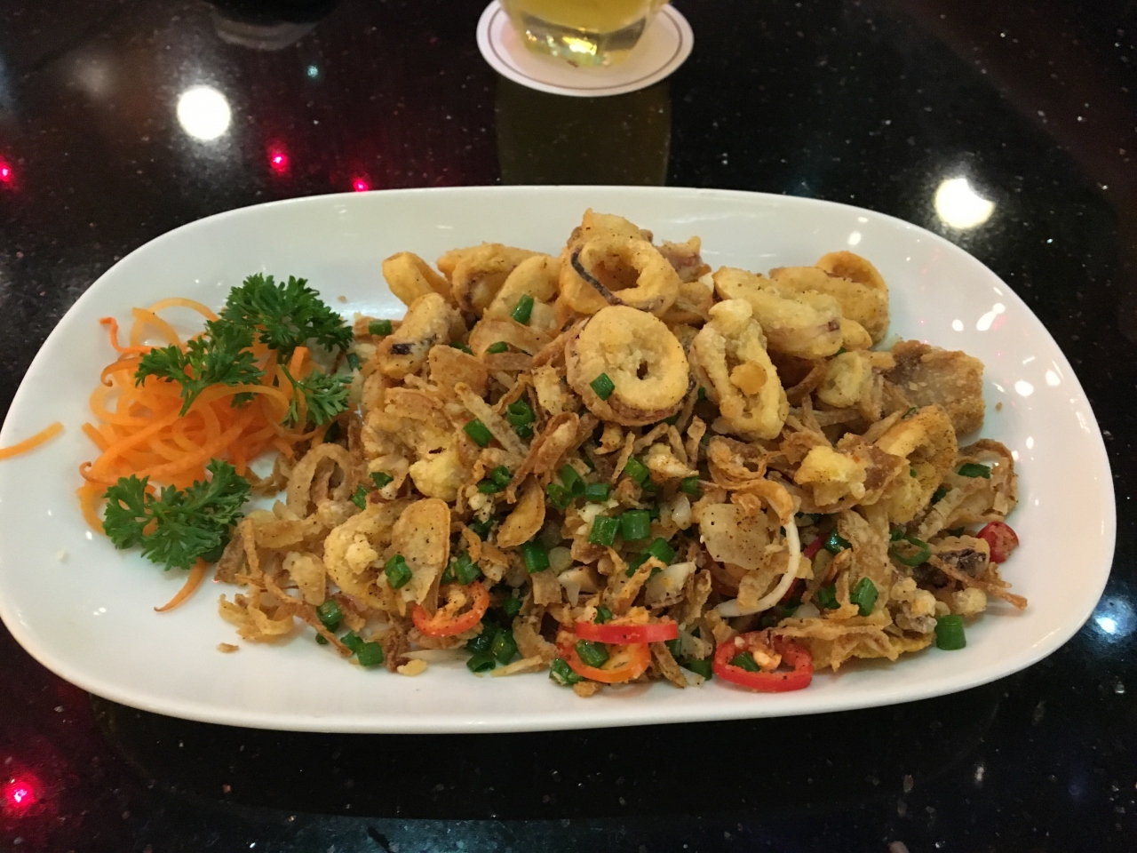 料理は、たとえばクリスタルジェイドやディンタイフォンあたりと較べるとまぁまぁ程度の評価。いくつかの料理を頼んだものの、あまり楽しめなかったので、唯一そこそこ美味しいと思えるイカリングフライだけを写真に収めた。