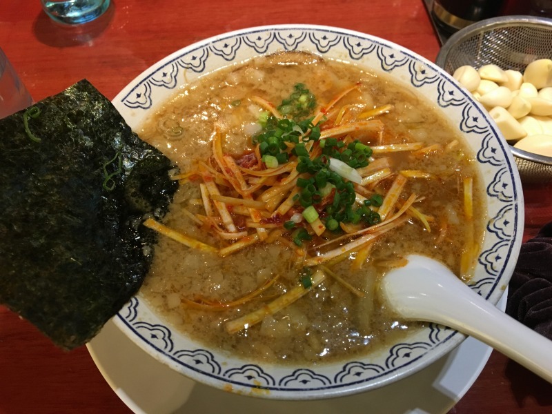 スープが溶けた天かす状のドロッとした独特の舌触りと、にんにくがしっかり利いた味付けが、クセになるかどうかはわかりませんが、たまには食べてもいいかな、と思える味。