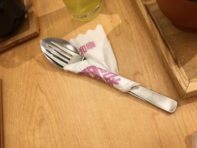 窓際の二人がけのテーブルでしたが、隣りとのテーブルの距離が近すぎて、同じテーブル囲んでるぐらいに近くて窮屈。