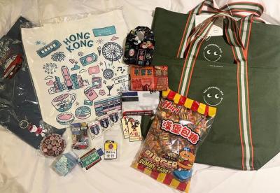 海外旅行あるある最後の夜に旅行中に買ったものをベッドに並べて撮影エコバ...