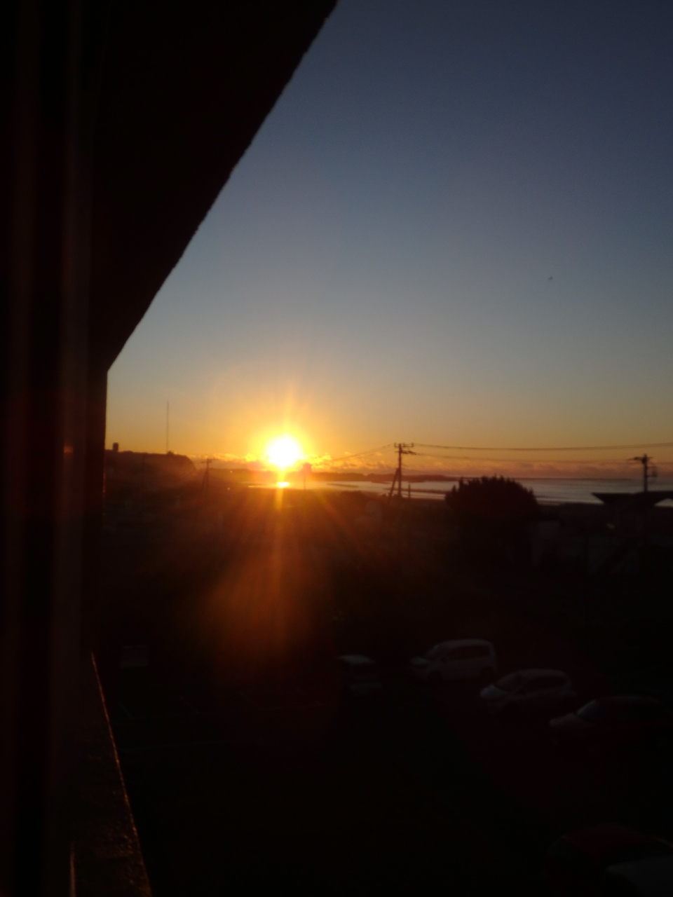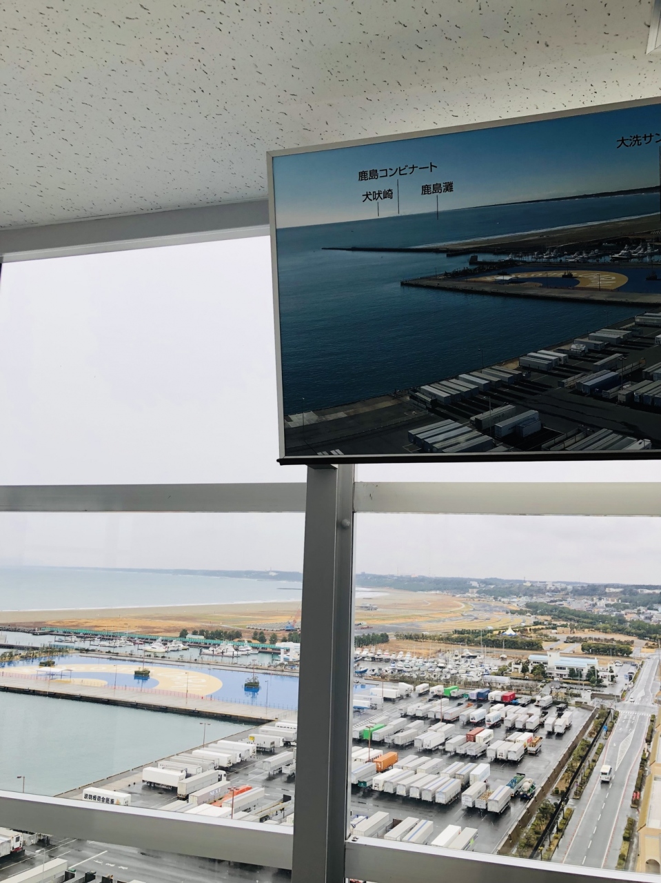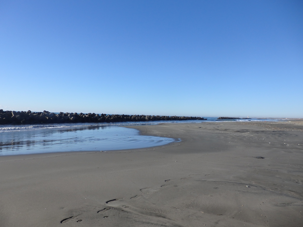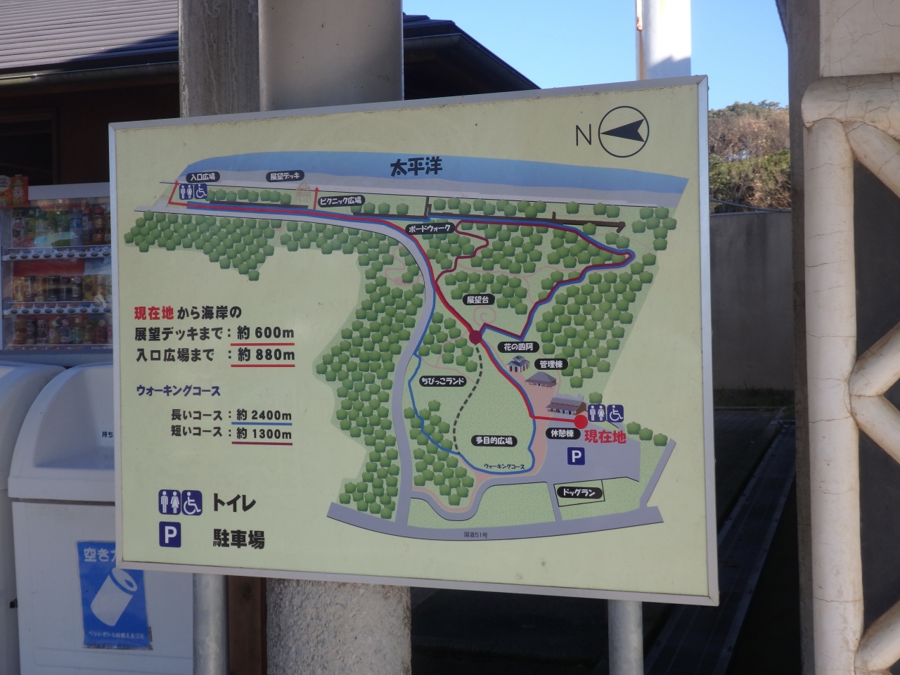 長く遠く続く海岸線を見下ろす丘に展望台があります。展望台から風力発電のための大きな風車が、点々と海岸線沿いに立っているのが見えます。駐車場は海釣りやサーフィンを楽しむ人でしょうか、埋まっていますが、そもそも空いてるので、ちょっと道路沿いに停めても少しなら平気でしょうか。(冬だからかもしれませんが)