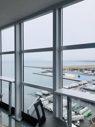 角部屋で、ガラス張りのお風呂からの明石海峡大橋の眺めは「非・日常」感でよかったです。部屋の真下には電車が走っており、舞子公園という竹林や遊歩道が整備された花咲くきれいな公園があり、遺跡なんかもちょっとあり、朝の散歩にももってこいです。