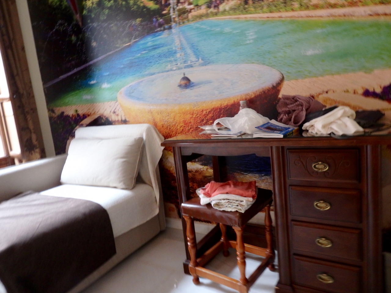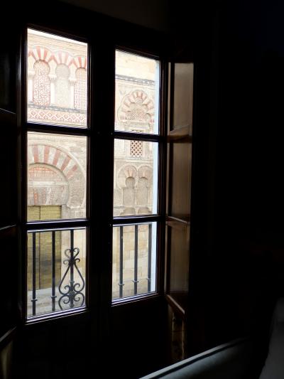 この部屋は実際、とても良かったです。バスルームはキレイで広々だし、ゆったりしたソファまで付いていて、バルコニーへの木製扉を開けるとメスキータの漆喰壁のアラビア模様が飽くことなく眺められるし、かつ、夜は静かだし。