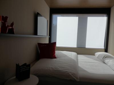 客室は思っていたよりすごく快適でした。ベッドの硬さも丁度良いし、何より窓のスクリーン”が気に入った。予約当初は、「壁一面のガラス窓はまぶしくて仕方ないんじゃ・・」と思っていたけど着いたてみたら白いスクリーンが降りていて程よい明るさは快適だった。「でも、ちょっと昼寝したい時はどうする!?」って思ったらの”遮光スクリーン”がちゃんと付いていました。遮光具合に煩い私ですが、スクリーンなのに完璧な遮光ぶりに感謝、感激。