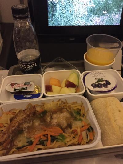 食事については、想像に反して全然美味しくなくて閉口しました。普通の中華ならいいのに。。。なお”Congee"という単語を知らなかった自分は、Cod(タラ)という魚の名前に惹かれてCongeeを頼み、開けてみたらドロドロしたもの・・・「乾燥タラ入りの”おかゆ”」で驚きました。まぁまぁ美味しかったもののさすが香港の航空ですね。