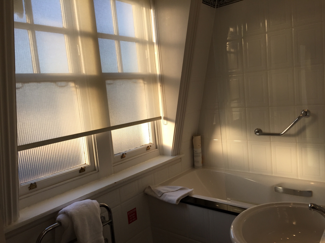 前回ロンドンに来たときから泊まりたいと思っていたホテルで、今回念願叶い2泊しました。事前に「静かな部屋でバスタブ付きを」とリクエストしといたんですが、返信は「出来るだけがんばります」的なものでどうしたものだろうと思ってました。