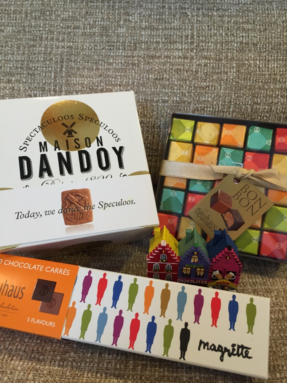 ユーロスターのチェック時間まで2時間ほどだったので、ロッカーにスーツケース(サイズにより3から5ユーロまで有り、日本に比べでかなり大きめ)を預けて、スーパーでお土産を物色し、ゴディバやノイハウスなどの専門店のチョコを集めた土産物屋に寄り、残った時間でフリッツを食べビールを飲むことが出来ました。
