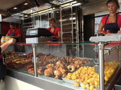 もちろん、テントの小さなお店もあり魅力的な食べ物屋さんが沢山。私はエジプトのお母さんの味(お惣菜)と、大型トラックの屋台でクルクルとオーブンで焼いた鳥の丸焼きを買ってお昼ごはんにしましたが、青空と空気もあいまってつくづく美味しい思い出になりました。