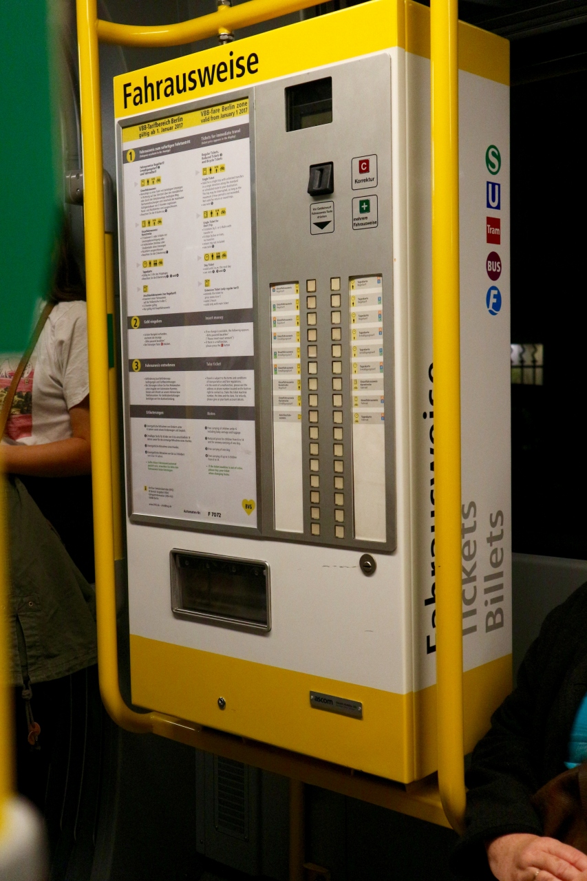 さて、ベルリン初日、まだお財布にコインがないまま、最寄りからトラムに乗り込みました。やはり・・・車内には券売機があるもののお札は入りませんでした。