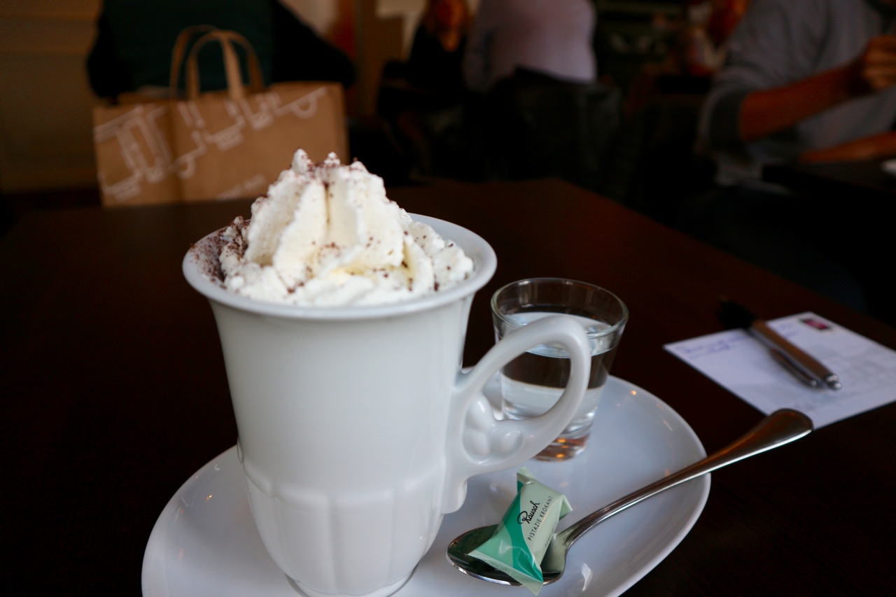 高級な雰囲気ですが、ホットチョコレートそのものは5ユーロくらいだったかな。その日は寒いこともあるのかとても混んでいて賑やかな店内でしたが、雨宿りとしては大変助かりました。