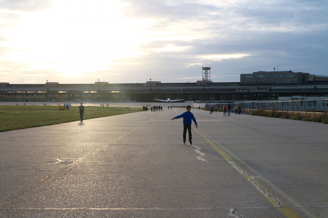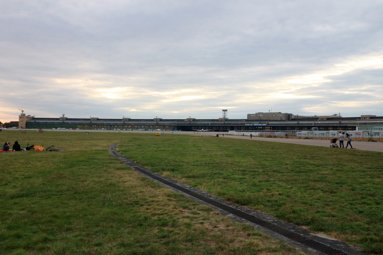 さて、地平線までみえるような広大な公園ですが、空港建物も滑走路も残っています。あとは芝生があって、凧揚げするひと、バレーボールするひと、ローラースケートをするひと、芝生に寝転んで本をよんでいるひと、昼寝するひと、、、思い思いに過ごしていて、とにかく広いので、たくさん人が好きなことをやっても空間が交わらない広さがすごいなぁと思いました。