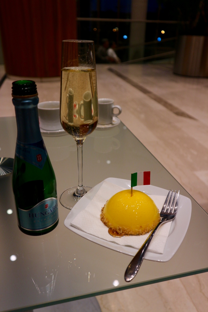 開演前にシャンパンとレモンムースタルトを頂きました。あとでお値段をみるとお安くてびっくり。こうした所ではちょっと高めくらいに思っていたので。あわせて800円くらいしかしなかったもよう。(いや、これでもハンガリーでは高いのか)- 旅行時期