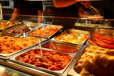 せっかく来たのだし、、と皿に惣菜を盛り合わせてチンしてくれるお店に並びましたが・・・お店のひとが雑でメゲました。頼みたいものを頼み終えてないので声をかけているのに、”ハイ、次どうぞ”ってされてしまい。忙しいからでしょうが。それと、よく考えると日本のランチよりも高かった(観光客対応価格)ので、さらに面白くないなと思っちゃいました。