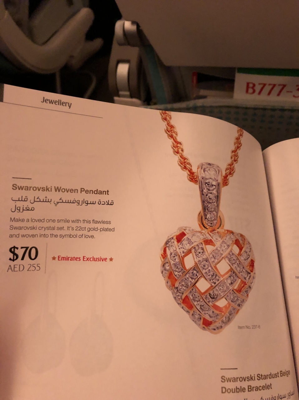 エミレーツ航空の機内販売、免税品のブックレットの価格表示が、ディルハム の他に、ドルがありました。